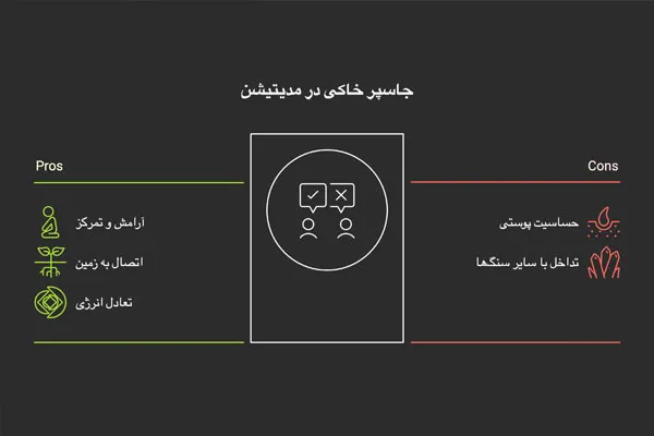 جاسپر خاکی یکی از بهترین سنگها برای تمرینات معنوی مانند مدیتیشن و یوگا است، زیرا انرژی grounding آن ذهن را آرام و بدن را متصل به زمین میکند.