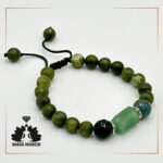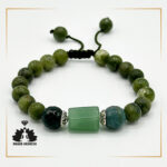 سنگ های تشکیل دهنده این محصول : عقیق خزه ای ، یشم ، اونتورین ، خرجکار نقره