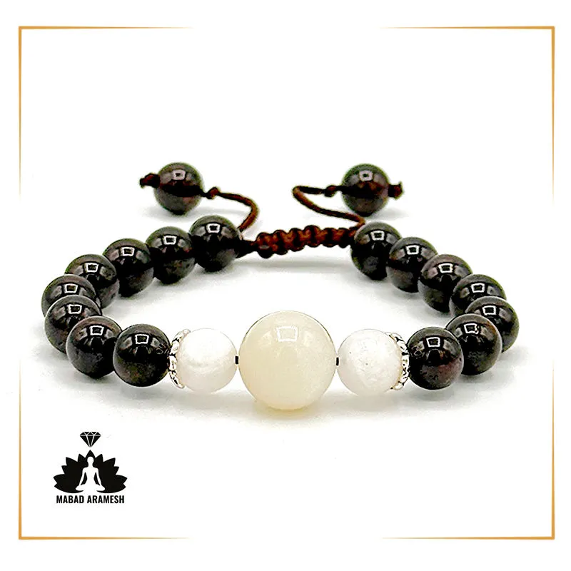 دستبند قدرتمند ترکیبی مون استون و گارنت با خرج کار نقره