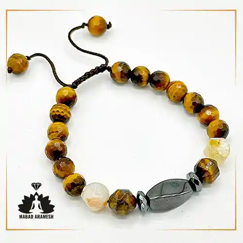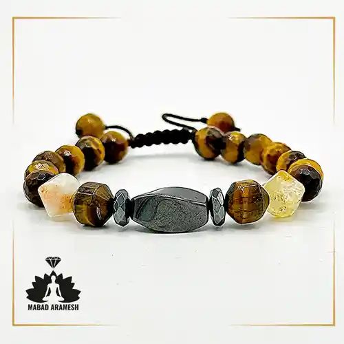 دستبند مردانه سنگ سیترین و حدید و جاسپر