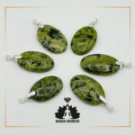 سنگ های تشکیل دهنده این محصول : سرپانتین به همراه کلیپس نقره و بندچرمی