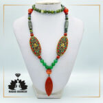 سنگ های تشکیل دهنده این محصول : اونتورین ، یشم ، جاسپر قرمز ، حدید (هماتیت) ، عقیق کارنلین با آویز جاسپر قرمز