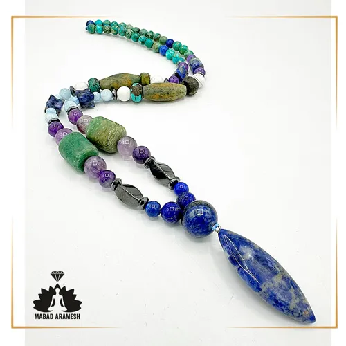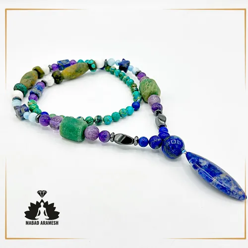 ✨💎 گردنبند فول انرژیک با محوریت تخصصی چاکرای گلو تمرکز و آرامش ومحافظت با هفتسنگ قدرتمند و آویز لاجورد 💎✨