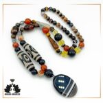 سنگ های تشکیل دهنده این محصول : جاسپر قرمز ، حدید(هماتیت) ، عقیق ، چشم ببر ، برنزیت ، سیترین ، عقیق سیاه ، تورمالین سیاه ، عقیق باباقوری با آویز عقیق سلیمانی به همراه کلیپس نقره