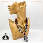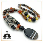 جاسپر قرمز ، حدید(هماتیت) ، عقیق ، چشم ببر ، برنزیت ، سیترین ، عقیق سیاه ، تورمالین سیاه ، عقیق باباقوری با آویز عقیق سلیمانی به همراه کلیپس نقره