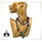 سنگ های تشکیل دهنده این محصول : لاجورد ، آمیتیست ، آپاتیت ، آکوامارین ، فیروزه ،اونتورین با آویز کریزوکولا و کلیپس نقره