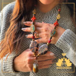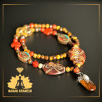 جاسپر قرمز ، جاسپر خاکی ، عقیق کارنلین ، برنزیت، حدید (هماتیت)، سیترین، چشم ببر به همراه آویز چشم ببر